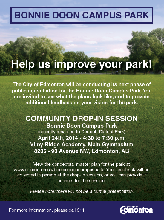 ?Please visit www.edmonton.ca/bonniedooncampuspark for access to the survey and concept plans.