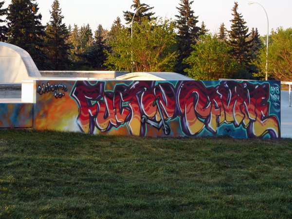 Evan Brunt is a talented industrial artist who completed two art murals at the Fulton Ravine South skate park. In the past he has done a number of art murals as private commissions in the Edmonton area and in Vancouver. He has also worked on some larger murals in collaboration with other artists. Evan puts a lot of thought into considering the needs of the client and the unique features of each site when he develops his art concepts.